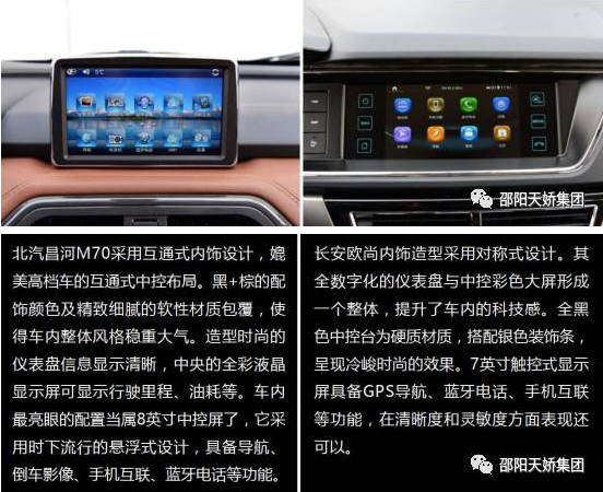 買車看配置,應該是常識。同為自主品牌,長安歐尚和北汽昌河M70在配置不分軒輊,但如果你關(guān)注細節(jié),就會發(fā)現(xiàn)不同。長安歐尚的內(nèi)飾造型采用全黑中控臺+7英寸顯示屏+全數(shù)字化儀表盤,整體看來冷峻時尚并富有科技感。而北汽昌河M70采用黑+棕的時尚雙色配飾,儀表盤和液晶屏在信息顯示上也更加清晰。而更搶眼的是位于中控臺頂部的8英寸中控屏,不僅集成GPS、倒車影像等功能于一身,超大超清晰的屏幕顯示也讓駕駛者查看更加方便,讓行駛更加安全。