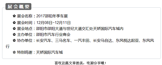 更多精彩,盡在12月08 -11日邵陽冬季車展