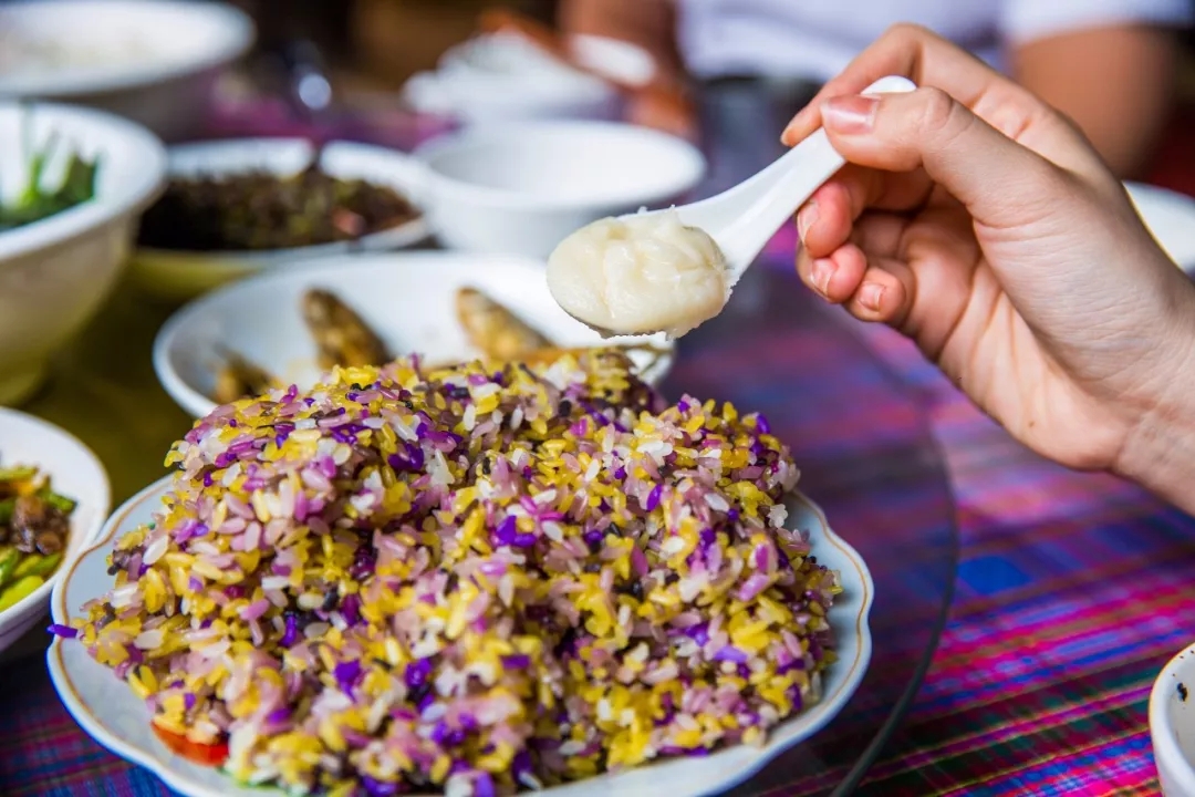 女主人用竹筒蒸出來(lái)的花米飯,配上這里地道的蜂蜜,簡(jiǎn)直不能更美味。