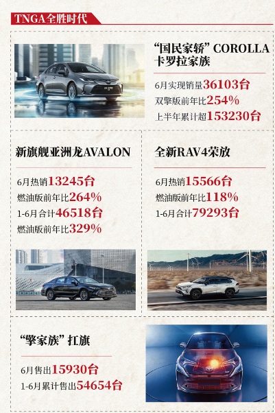 2019年開(kāi)始,一汽豐田“TNGA三強(qiáng)”:亞洲龍AVALON、全新RAV4榮放、全新卡羅拉相繼推出,備受消費(fèi)者歡迎,市場(chǎng)熱度始終不減。伴隨市場(chǎng)的逐步復(fù)蘇,三款車展示出了快速向上的爆發(fā)力,全新RAV4榮放6月銷量15566臺(tái),卡羅拉家族銷售36103臺(tái),兩車均創(chuàng)6月歷史新高;旗艦車型亞洲龍AVALON的6月銷量13245臺(tái),創(chuàng)下單月銷量新高。奕澤IZOA家族6月銷量5893臺(tái),其中奕澤IZOA燃油版同比增長(zhǎng)12%;威馳家族6月收獲7140臺(tái);PRADO普拉多6月銷售3282臺(tái)。