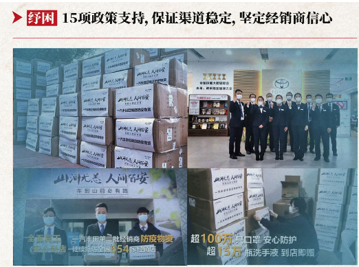面對(duì)新冠疫情,一汽豐田更是展示出了守望相助,命運(yùn)相連的共同體意識(shí)。以紓困為關(guān)鍵詞,一汽豐田通過(guò)關(guān)鍵防疫物資支持、四項(xiàng)資金扶持、營(yíng)銷全力支持、五項(xiàng)考核松綁等四個(gè)層面的15項(xiàng)政策支持,保證渠道穩(wěn)定,堅(jiān)定渠道信心。在多維度政策加持下,一汽豐田經(jīng)銷商空檔不空閑,全情投入搶市場(chǎng)的局面,眾擎易舉,最終通過(guò)對(duì)供需節(jié)奏、主力車型、線上關(guān)注、區(qū)域增量、政策機(jī)會(huì)、保有客戶的“六搶”,搶贏了上半年,也為下半年乃至更遠(yuǎn)的未來(lái)奠定了堅(jiān)實(shí)基礎(chǔ)。