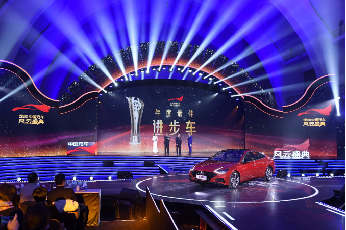 2021年1月20日,中央廣播電視總臺“2020中國汽車風云盛典”頒獎典禮在京拉開序幕。經(jīng)過組委會長達4個月的專業(yè)測評,北京現(xiàn)代第十代索納塔脫穎而出,榮獲“年度最佳進步車”獎,代表了未來汽車產(chǎn)品的發(fā)展潮流,引領了未來細分市場的發(fā)展趨勢。