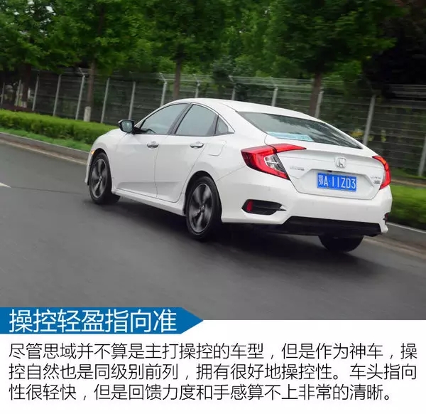 本田車型在家用車的領(lǐng)域一直都不會太突出操控性。事實(shí)上那些帶R的家伙也并不以駕駛樂趣為己任。但是,看似不運(yùn)動的調(diào)均卻可以給人帶來更好的駕駛感受。尤其是靈巧感,非常的好上手。我想這是本田設(shè)計師希望在家用車上帶給大家的駕駛感受。畢竟,這個級別談操控有些不合時宜。不如做的順手一些,再把舒適做到剛剛好的地步。兩者兼顧一直是本田車型做的很好地一點(diǎn)。