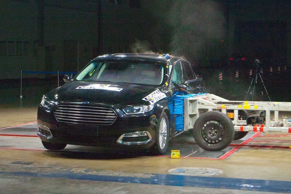 中國(guó)汽車技術(shù)研究中心正式公布了“2016年度第三批車型C-NCAP評(píng)價(jià)結(jié)果”,在《C-NCAP管理規(guī)則(2015年版)》新規(guī)的嚴(yán)苛標(biāo)準(zhǔn)之下,福特金牛座EcoBoost? 245時(shí)尚型憑借在“100%正面剛性壁障碰撞”,“40%正面偏置碰撞”、“側(cè)面碰撞”以及“鞭打測(cè)試”四個(gè)項(xiàng)目中的出色表現(xiàn),以總分55.4分的優(yōu)異成績(jī)榮膺五星安全評(píng)級(jí)。
