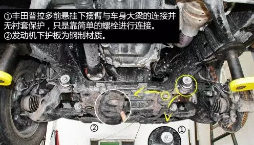 普拉多前雙叉臂式獨立懸掛在空間利用率方面雖稍遜于麥弗遜懸掛,但兩者結(jié)構(gòu)都是相當(dāng)緊湊的,且由于多了上擺臂,在抓地性和防側(cè)傾等方面的表現(xiàn)都要比后者優(yōu)秀。普拉多發(fā)動機下方有護板保護,且為鋼制。在下擺臂和車身大梁的連接方面則是使用較為簡單的螺栓連接。