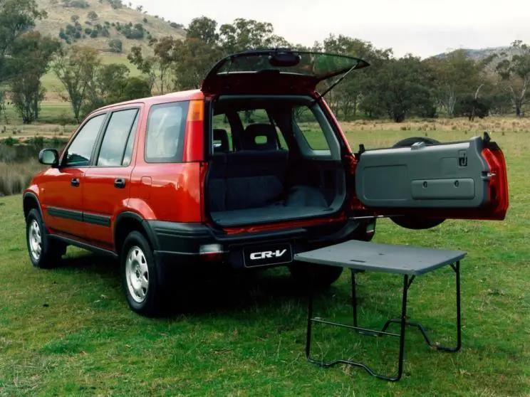 ▲初代CR-V不但車內空間舒適,還能把后備箱蓋板變成折疊桌