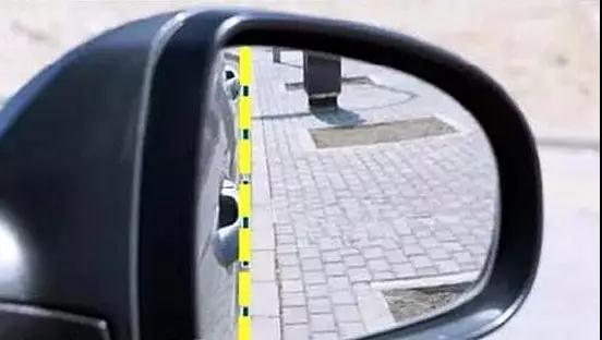 當你順直車身后,注意觀察右側放光鏡中的門把手是否與馬路邊對齊。