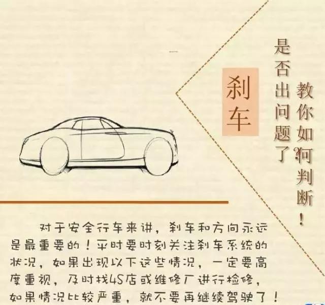 如何判斷剎車是否出現(xiàn)問題是駕駛員必備技能, 因?yàn)閷?duì)于安全行車來講,剎車和方向永遠(yuǎn)是最重要的!平時(shí)要時(shí)刻關(guān)注剎車系統(tǒng)的狀況,如果出現(xiàn)以下這些情況,一定要高度重視,及時(shí)找4S店進(jìn)行檢修,如果情況比較嚴(yán)重,就不要再繼續(xù)駕駛了!